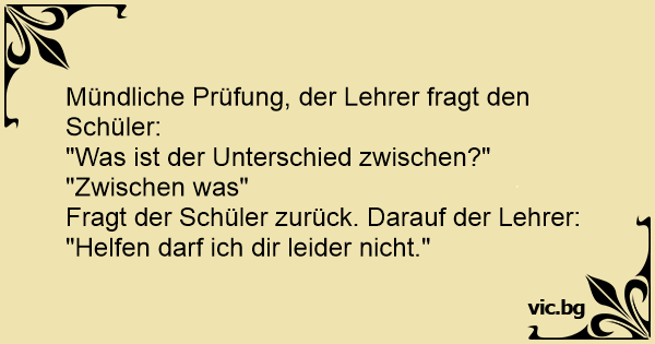 Fragt der Schüler zurück. Darauf der Lehrer:
