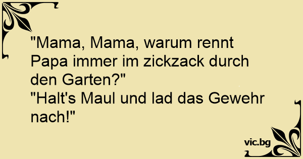 - De ce fuge tata în zig-zag, mamă? - Taci şi mai adu gloanţe!