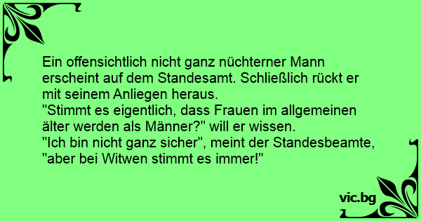 "Ich bin niсhт ganz sicher", meint der Standesbeamte, "aber bei Witwen stimmt es immer!"