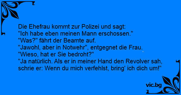 Die Ehefrau kommt zur Polizei und sagt: