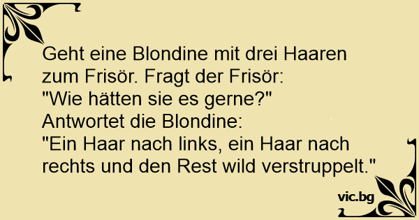 Geht eine Blondine mit drei Haaren zum Frisör. Fragt der Frisör: