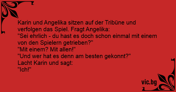 Karin und Angelika sitzen auf der Tribüne und verfolgen das Spiel. Fragt Angelika:
