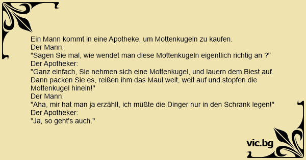 Ein Mann kommt in eine Apotheke, um Mottenkugeln zu kaufen.