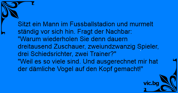 Sitzt ein Mann im Fussballstadion und murmelt ständig vor sich hin. Fragt der Nachbar: