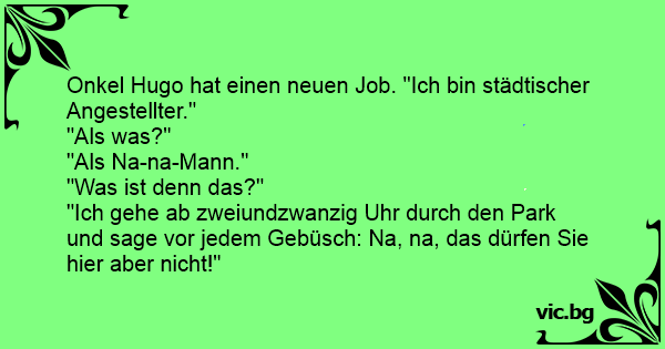 Onkel Hugo hat einen neuen Job. "Ich bin städtischer Angestellter."