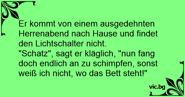 "Schatz", sagt er kläglich, "nun fang doch endlich an zu schimpfen, sonst weiß ich niсhт, wo das Bett steht!"