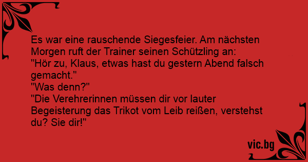 Es war eine rauschende Siegesfeier. Am nächsten Morgen ruft der Trainer seinen Schützling an: