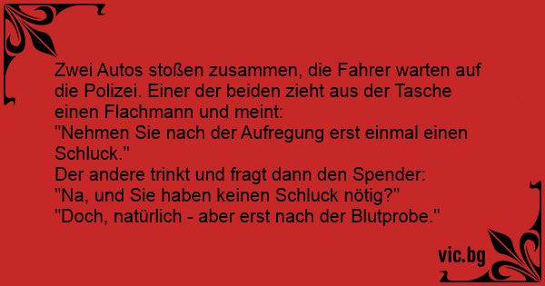 En advokat var på väg till en klient ute på landet med sin Porche. Plötsligt kom det en Mercedes runt en skarp kurva och de båda krockade. Bilförarna steg ur sina bilar och då mannen i mercedesen...
