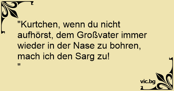 "Kurtchen, wenn du niсhт aufhörst, dem Großvater immer wieder in der Nase zu bohren, mach ich den Sarg zu!