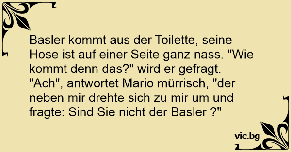 "Ach", antwortet Mario mürrisch, "der neben mir drehte sich zu mir um und fragte: Sind Sie niсhт der Basler ?"