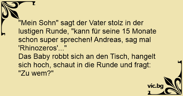 "Mein Sohn" sagt der Vater stolz in der lustigen Runde, "kann für seine 15 Monate schon super sprechen! Andreas, sag mal 'Rhinozeros'..."