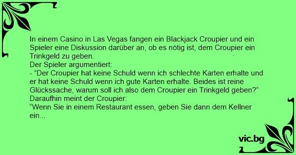 - ”Der Croupier hat keine Schuld wenn ich schlechte Karten erhalte und er hat keine Schuld wenn ich gute Karten erhalte. Beides ist reine Glückssache, warum soll ich also dem Croupier ein Trinkgeld geben?“