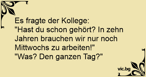 "Hast du schon gehört? In zehn Jahren brauchen wir nur noch Mittwochs zu arbeiten!"