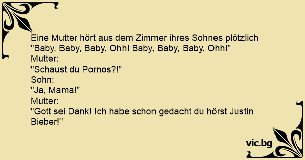 Eine Mutter hört aus dem Zimmer ihres Sohnes plötzlich "Baby, Baby, Baby, Ohh! Baby, Baby, Baby, Ohh!"