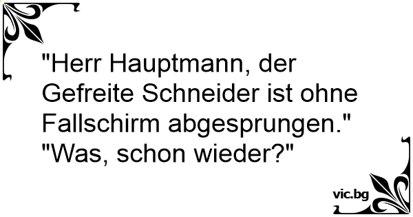 "Herr Hauptmann, der Gefreite Schneider ist ohne Fallschirm abgesprungen."
