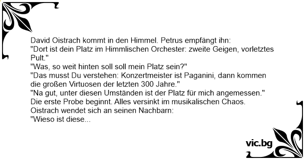 David Oistrach kommt in den Himmel. Petrus empfängt ihn: