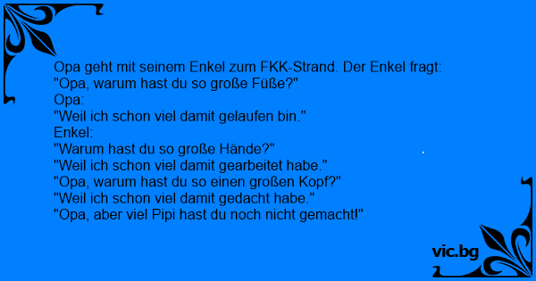 Opa geht mit seinem Enkel zum FKK-Strand. Der Enkel fragt: