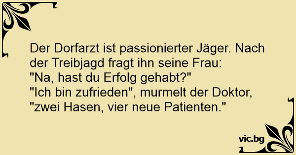 Der Dorfarzt ist passionierter Jäger. Nach der Treibjagd fragt ihn seine Frau: