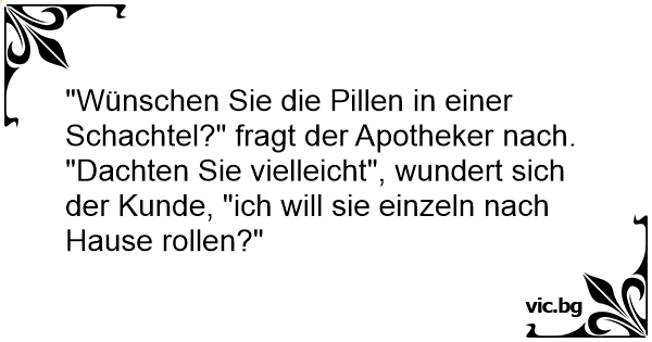 "Wünschen Sie die Pillen in einer Schachtel?" fragt der Apotheker nach.