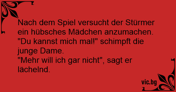 Nach dem Spiel versucht der Stürmer ein hübsches Mädchen anzumachen. "Du kannst mich mal!" schimpft die junge Dame.