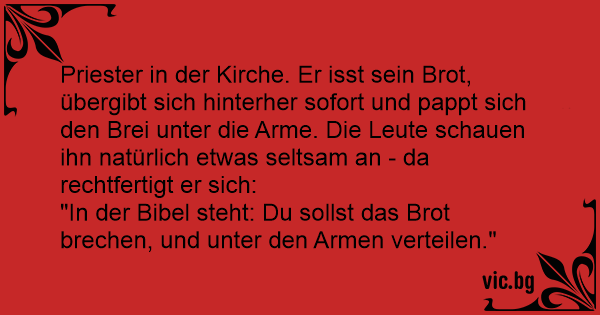 Priester in der Kirche. Er isst sein Brot, übergibt sich hinterher sofort und pappt sich den Brei unter die Arme. Die Leute schauen ihn natürlich etwas seltsam an - da rechtfertigt er sich: