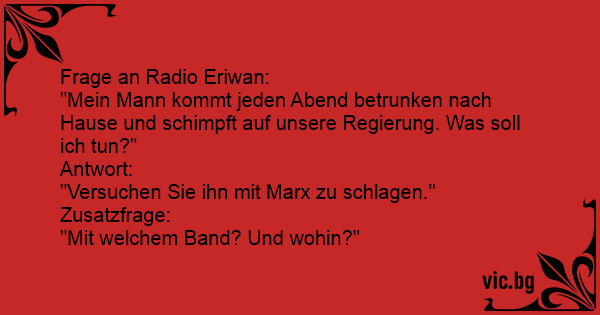 "Mein Mann kommt jeden Abend betrunken nach Hause und schimpft auf unsere Regierung. Was soll ich tun?"