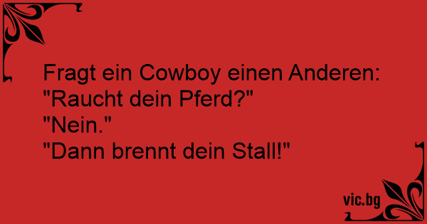 "Eugen, rauchen deine Kühe?" - "Nein Karl." - "Dann brennt dein Stall."