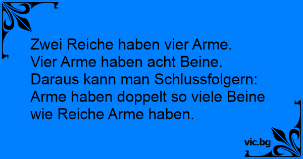 Daraus kann man Schlussfolgern: Arme haben doppelt so viele Beine wie Reiche Arme haben.
