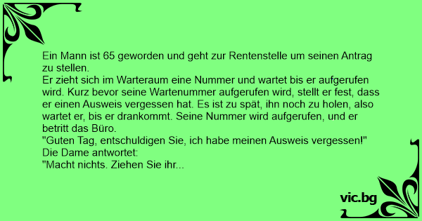 "Das reicht. Sie sind mindestens 65! Sie bekommen den Rentnerausweis."