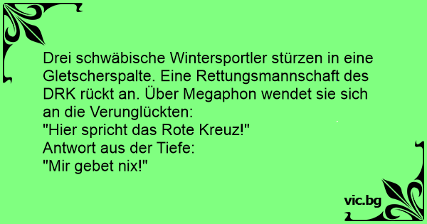 Drei schwäbische Wintersportler stürzen in eine Gletscherspalte. Eine Rettungsmannschaft des DRK rückt an. Über Megaphon wendet sie sich an die Verunglückten: