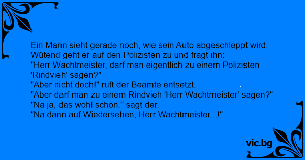 "Herr Wachtmeister, darf man eigentlich zu einem Polizisten 'Rindvieh' sagen?"