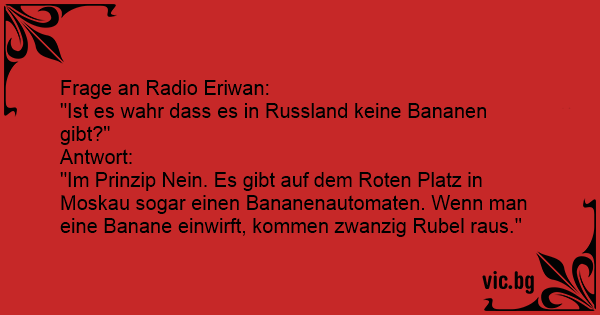 "Im Prinzip Nein. Es gibt auf dem Roten Platz in Moskau sogar einen Bananenautomaten. Wenn man eine Banane einwirft, kommen zwanzig Rubel raus."