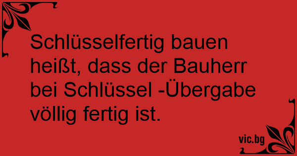 Schlüsselfertig bauen heißt, dass der Bauherr bei Schlüssel -Übergabe völlig fertig ist.