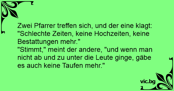 "Stimmt," meint der andere, "und wenn man niсhт ab und zu unter die Leute ginge, gäbe es auch keine Taufen mehr."