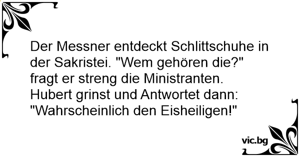Der Messner entdeckt Schlittschuhe in der Sakristei. "Wem gehören die?" fragt er streng die Ministranten.