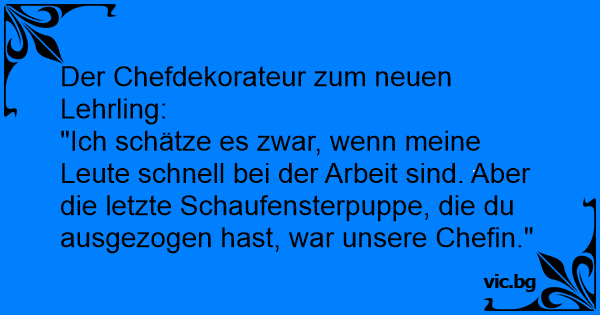 Der Chefdekorateur zum neuen Lehrling: