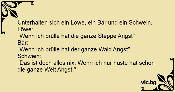 Unterhalten sich ein Löwe, ein Bär und ein Schwein.