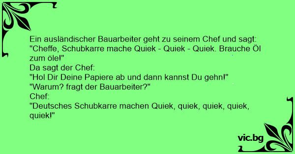 Ein ausländischer Bauarbeiter geht zu seinem Chef und sagt: