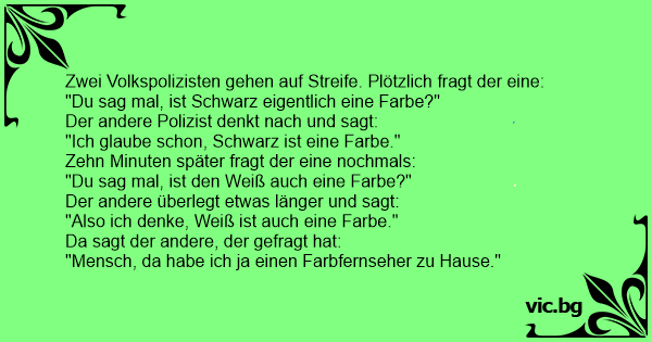 Zwei Volkspolizisten gehen auf Streife. Plötzlich fragt der eine: