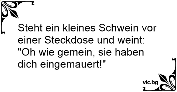 Steht ein kleines Schwein vor einer Steckdose und weint: