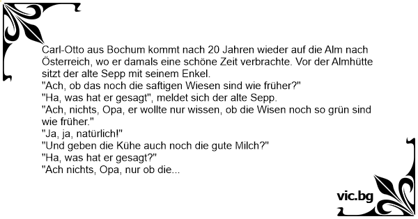 "Ach, nichts, Opa, er wollte nur wissen, ob die Wisen noch so grün sind wie früher."