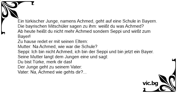 Ein türkischer Junge, namens Achmed, geht auf eine Schule in Bayern.