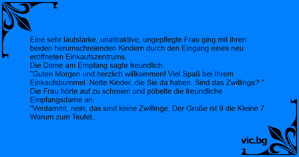 "Vеrdаммт, nein, das sind keine Zwillinge. Der Große ist 9 die Kleine 7. Warum zum Теufеl glaubst du blöde Kuh, dass es Zwillinge sind? Bist du blind, oder einfach nur saudumm?"