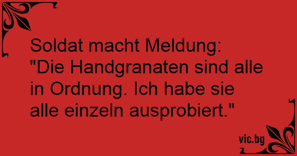 "Die Handgranaten sind alle in Ordnung. Ich habe sie alle einzeln ausprobiert."