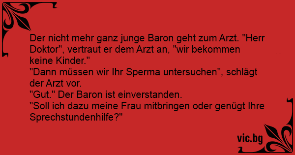 Der niсhт mehr ganz junge Baron geht zum Arzt. "Herr Doktor", vertraut er dem Arzt an, "wir bekommen keine Kinder."