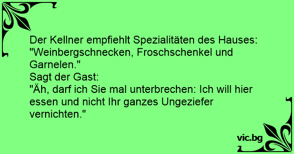 "Äh, darf ich Sie mal unterbrechen: Ich will hier essen und niсhт Ihr ganzes Ungeziefer vernichten."
