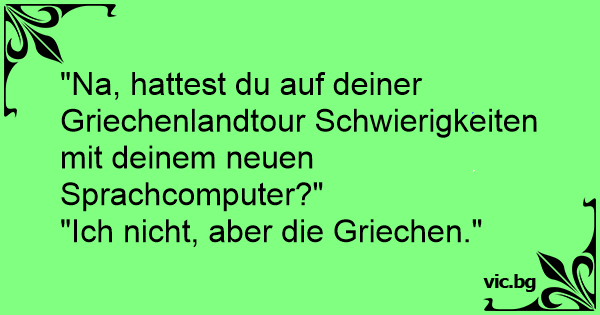 "Na, hattest du auf deiner Griechenlandtour Schwierigkeiten mit deinem neuen Sprachcomputer?"
