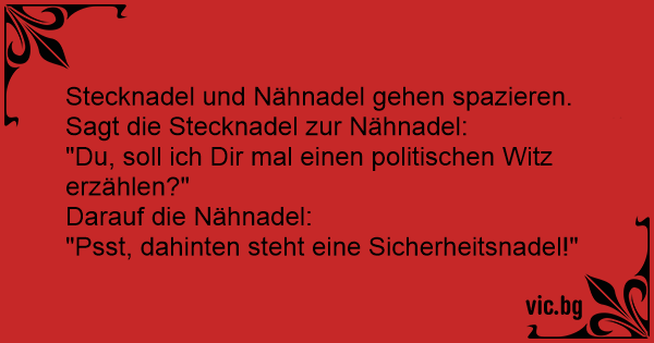 Stecknadel und Nähnadel gehen spazieren. Sagt die Stecknadel zur Nähnadel: