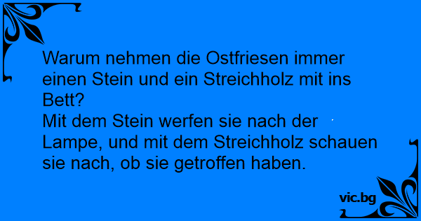Warum nehmen die Ostfriesen immer einen Stein und ein Streichholz mit ins Bett?