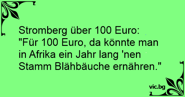 "Für 100 Euro, da könnte man in Afrika ein Jahr lang 'nen Stamm Blähbäuche ernähren."
